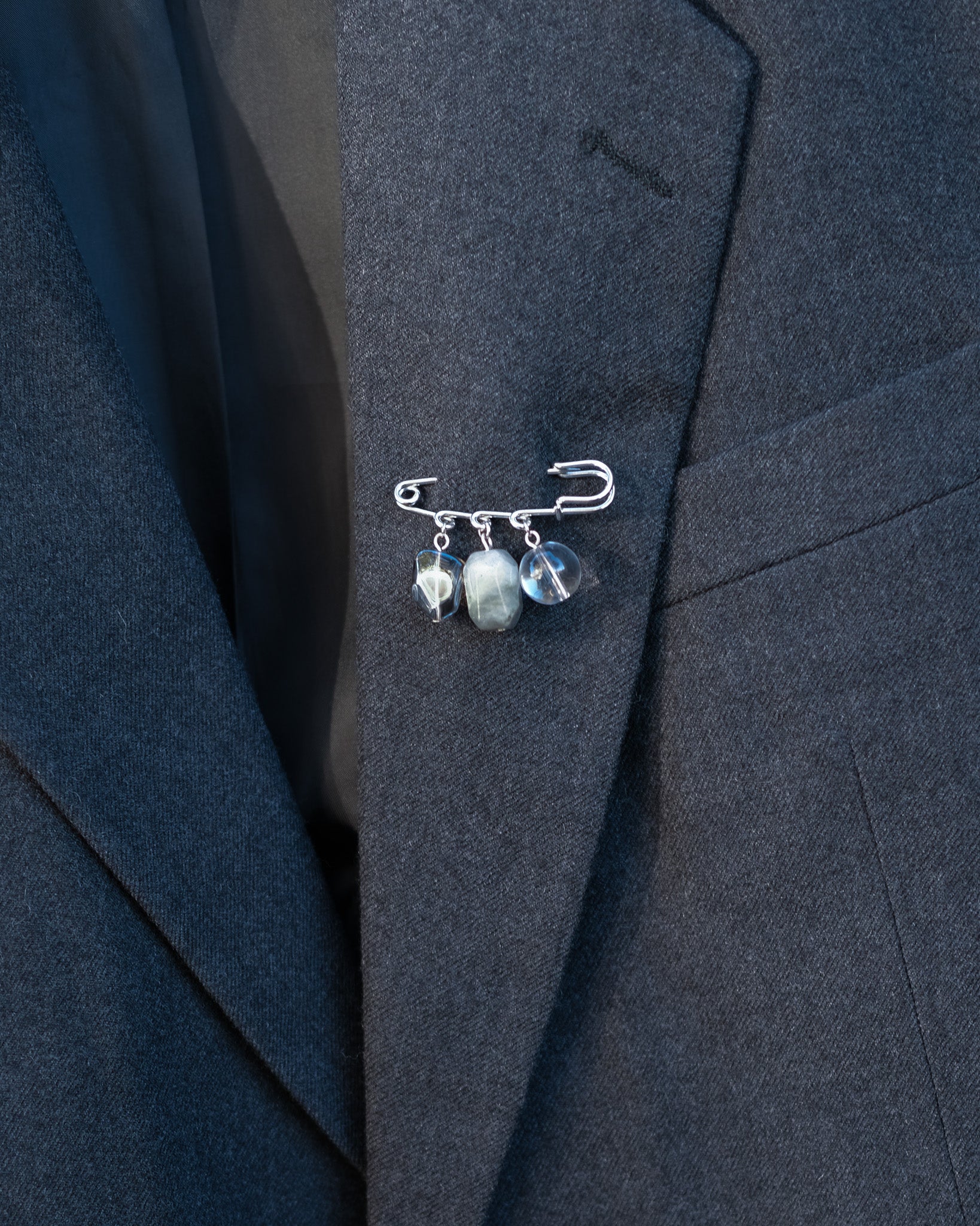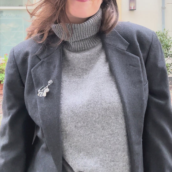 Comes with a handmade pin brooche crafted from a mix of vintage and new high-quality beads, which may include gemstones such as dalmatian jasper or quartz, freshwater pearls, and vintage Czech glass beads. Each pin is uniquely composed, making every piece one of a kind.