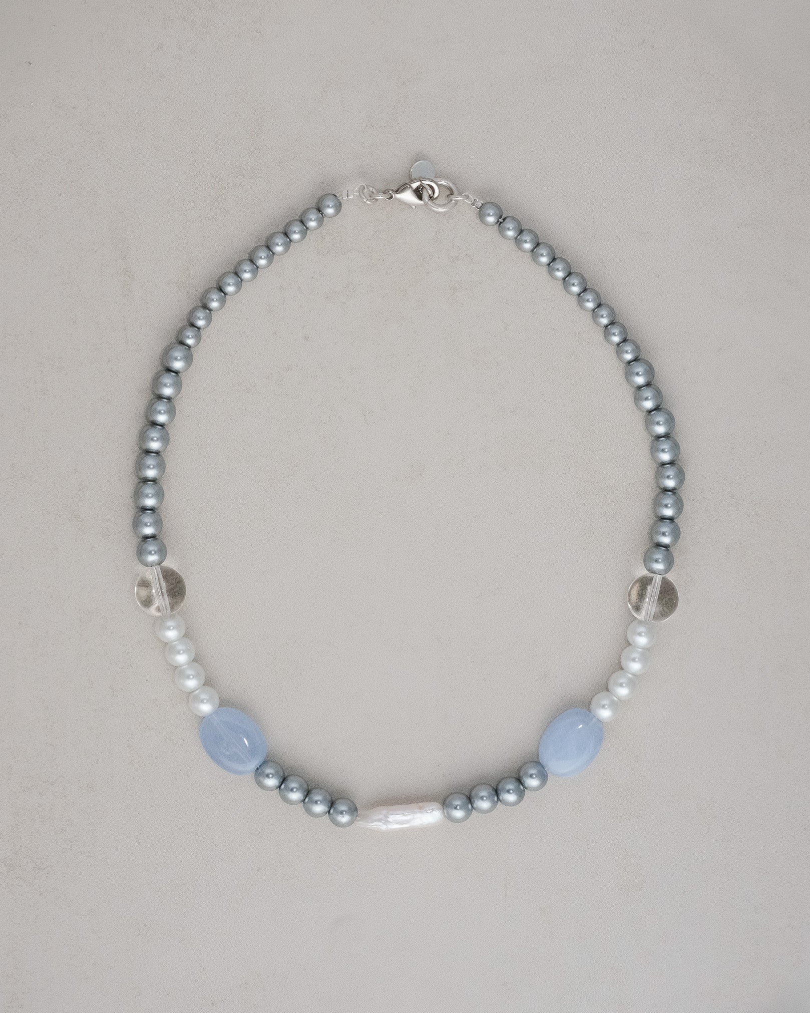 Handcrafted from unique vintage and deadstock beads (almost all), this necklace combines nostalgic charm with a modern edge. Perfect for layering or wearing solo, it’s a statement piece that’s effortlessly chic and full of personality.